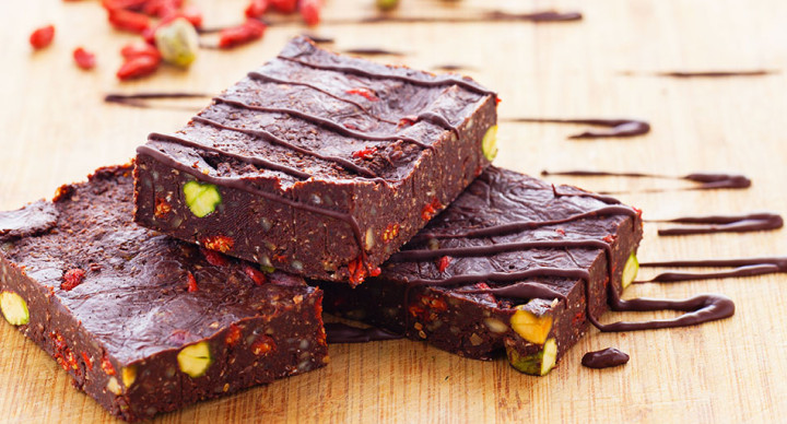 Prep Time: 20 mins chilling time or overnight Ingredients ½ cup (125ml) coconut oil 2 tablespoons coconut butter ½ cup (50g) raw cacao powder 2 tablespoons rice malt syrup pinch of salt ¼ cup cranberries ¼ cup shelled pistachios 3/4 cup Food for Health Berry & Seed booster ¼ cup shelled pistachios Directions Gently melt the coconut oil and coconut butter in a saucepan. Sift and stir in the raw cacao powder and blend in rice malt syrup, salt, berry & seed booster, cranberries and pistachios. Grease and line a 20cmx10cmx7cm deep (8inx4inx3in) loaf pan. Pour the mixture into pan and chill in the fridge overnight until set. Cut into snack-size bites at approximately 1.5cm (1/2 in) thick. Gluten Free, Vegan