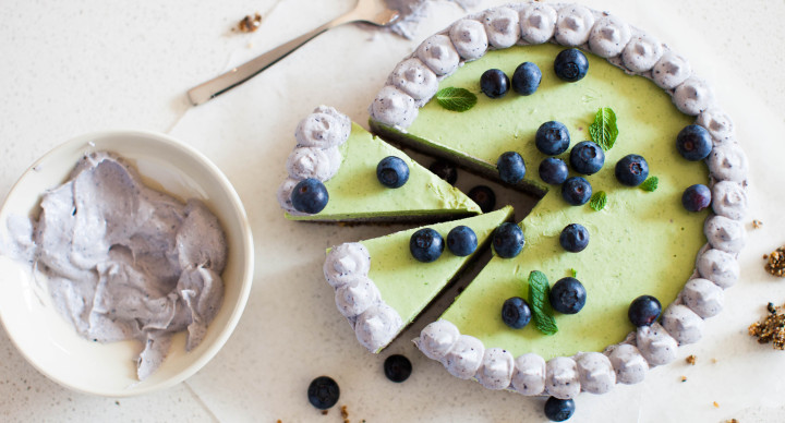 Ingredients Base 150g Food for Health Gourmet Protein Muesli 150g dried figs 20g cacao butter Lime Layer 2 cups soaked cashews Juice & zest, 3 limes Handfull of spinach 30mL maple syrup 50mL coconut milk 50g cacao butter, melted Blueberry Layer 2 cups soaked cashews 100g blueberries 20mL maple syrup 50mL coconut milk 70g cacao butter, melted Directions Base: Place all ingredients in a food processor and blend until combined. Cover base of a round cake tin with baking paper. Press base mixture evenly on bottom of tin. Refrigerate while you do lime layer. Lime Layer: Place all ingredients in a food processor and blend for approximately 10 minutes, until smooth. Pour mixture over base. Refrigerate for at least 30 minutes. Blueberry Layer: Place all ingredients in a food processor and blend for about 10 minutes, until super smooth. Pour mixture over the lime layer and spread evenly. Refrigerate for at least 6 hours, or preferably overnight.
