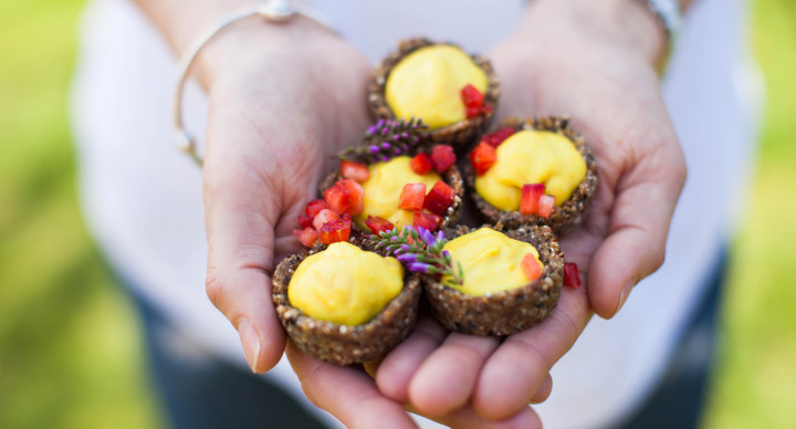 Ingredients Base 150g Food for Health Gluten Free Muesli 150g dried figs 20g cacao butter Filling 1/3 cup tahini 1/4 cup coconut butter 1/2 cup coconut yoghurt 1/4 cup fresh lemon juice Zest 1 lemon 3-4 tablespoon rice malt syrup, to taste Pinch turmeric Directions Base Add all (base) ingredients to a food processor and blend until combined. Press into small cupcake tins, lined with cupcake wrappers. Refrigerate base, while making filling. Filling Add all (filling) ingredients to food processor and blend until smooth. Distribute filling evenly in all pre-made base.